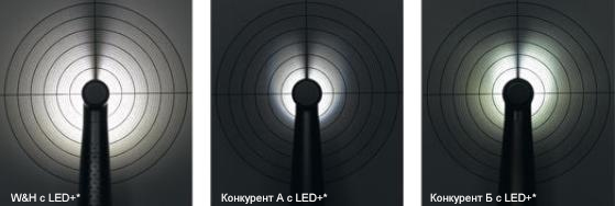 • Максимално поле на осветяване чрез позициониране на чипа за LED директно върху изхода на светлината - върху главата на инструмента.