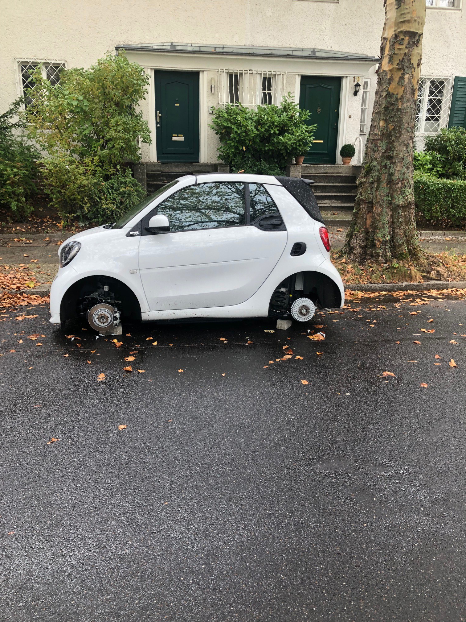 KURZ mal weg… Das wird sich der Besitzer des kleinen weißen Flitzers auch gedacht haben – das Auto aufgebockt und alle vier Räder abmontiert. Naaaa, wo bin ich? Ich melde mich heute aus der Hauptstadt, auch Bronxlin genannt :-)