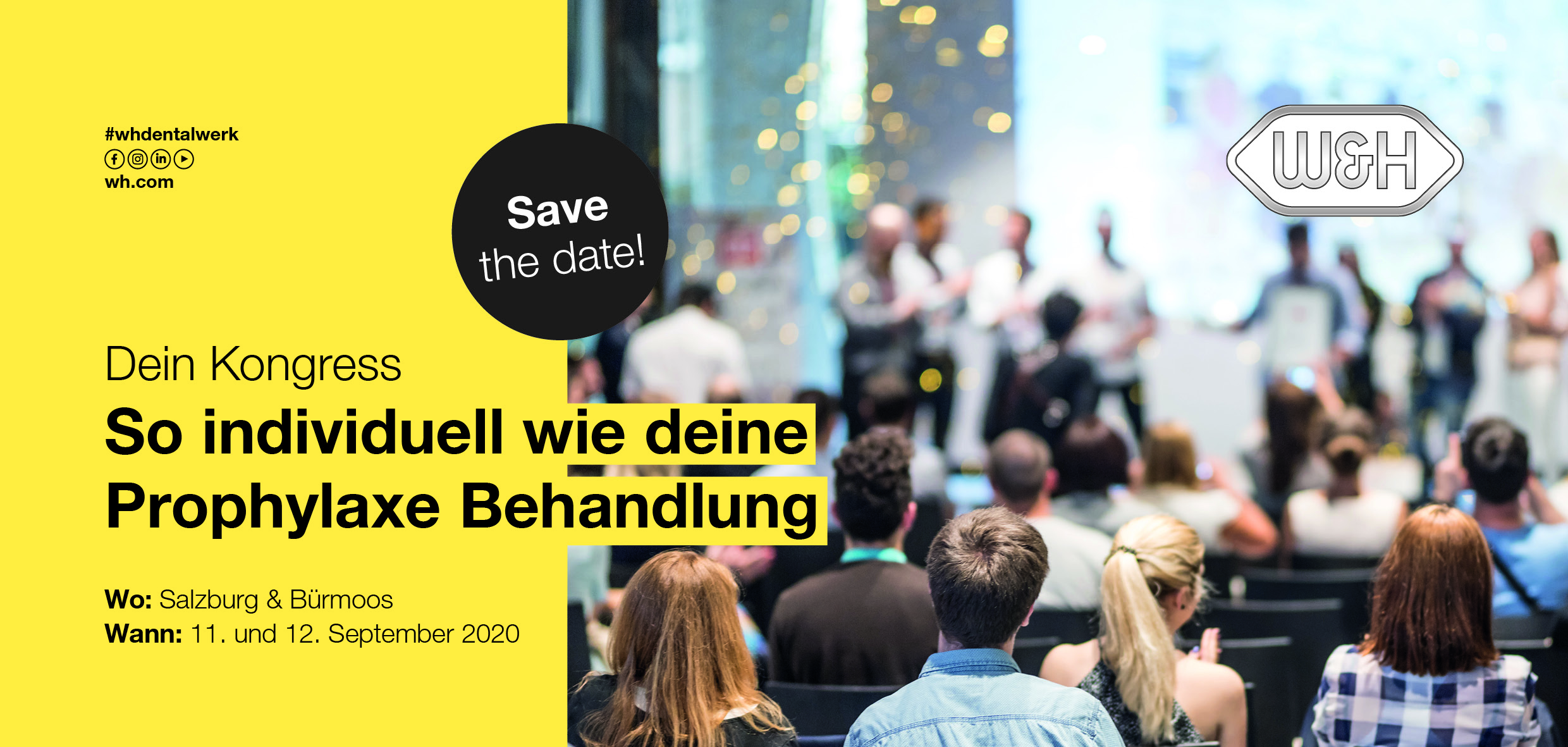 Druckfrisch erschienen ist unser Save the Date-Flyer anlässlich des ersten W&H Prophylaxe-Kongresses, der am 11. und 12. September 2020 stattfindet. „Dein Kongress – so individuell wie Deine Prophylaxe-Behandlung“ ist das Thema – Ja! Da kann man eigentlich nur in großer Vorfreude sein. By the way handelt es sich bei diesem Kongress um ein TOTAL neuartiges Format, bei dem die Teilnehmer die Themen vorgeben. Wo das möglich ist? Na in der PROPHY.community unter https://prophy.community/. Teilnahmeschluss ist der 31. Dezember 2019.