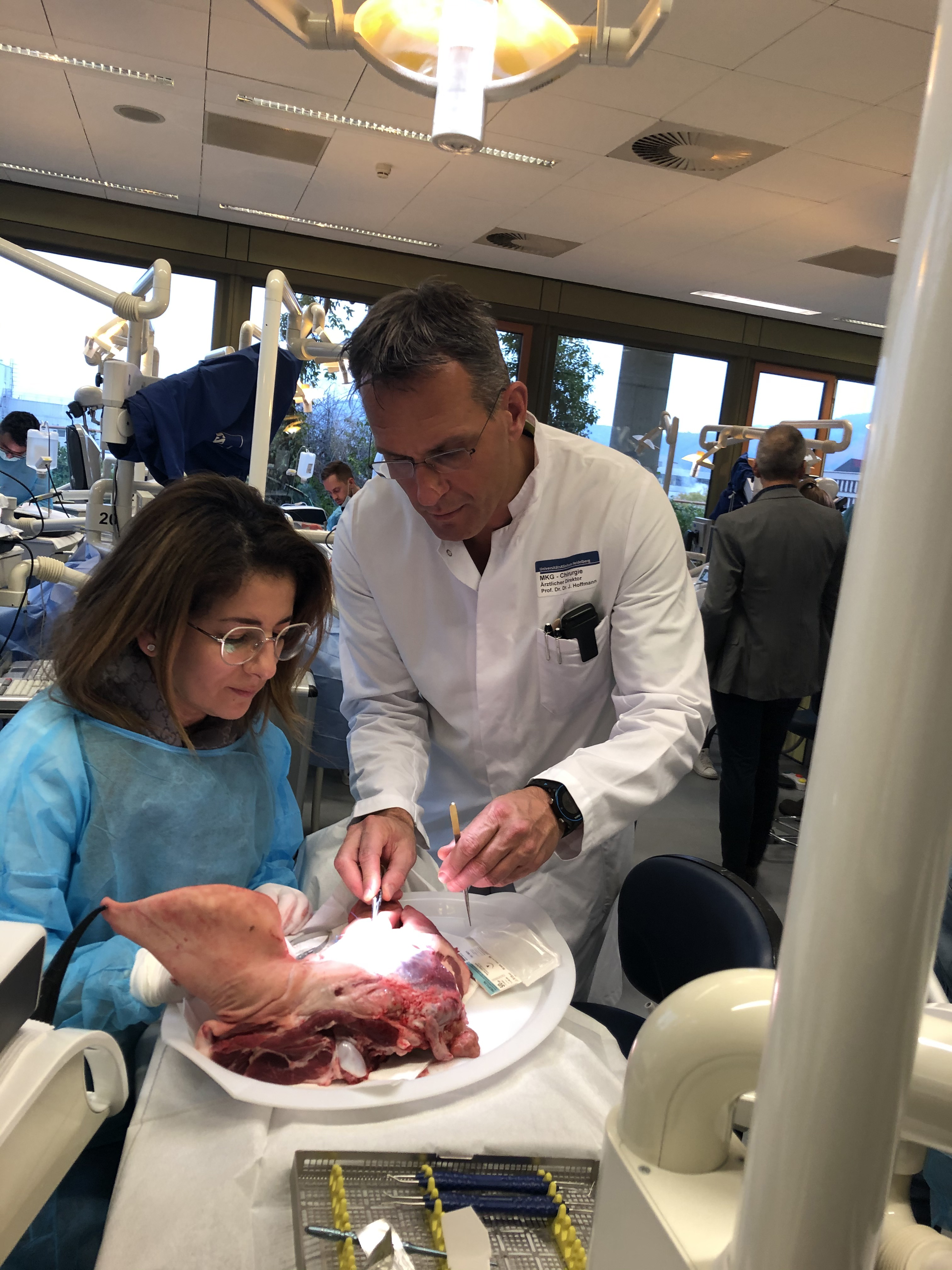 KURZe Schrecksekunde am Freitagnachmittag: it was forgotten to order Schweinekiefer. Was das für einen Augmentationskurs bedeutet, muss hier wohl nicht genauer erläutert werden... Hektisch wurde folglich mit dem Lieferanten hin und her telefoniert und es gab schlussendlich Entwarnung. Schweinekiefer waren kurzfristig lieferbar. Puh, was ein Glück!