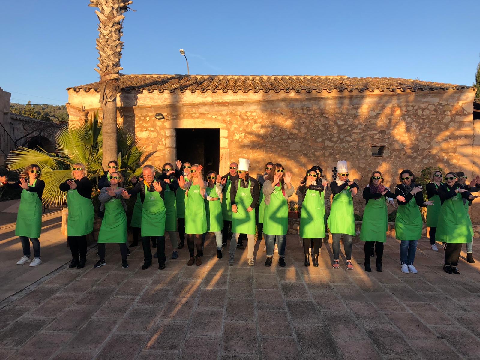 Kulinarisch ging es auf Malle noch ordentlich weiter, denn W&H lud zum großen Paella-Kochen. Und damit sich auch keiner bekleckert, hatte Roland fesche grüne Schürzen im Gepäck. Diese wurden zu späterer Stunde wieder ausgezogen, denn jetzt standen alle Zeichen auf „Silence Party“. Noch nie gehört? Dann unbedingt mal machen! Dabei handelt es sich um eine Party-Variante, bei der jeder Teilnehmer die Musik ausschließlich über Kopfhörer eingespielt bekommt. Tanzen in der Stille – dem Roli hats gefallen und ich freue mich, dass er so einen schönen Start in seinen Geburtstag hatte.