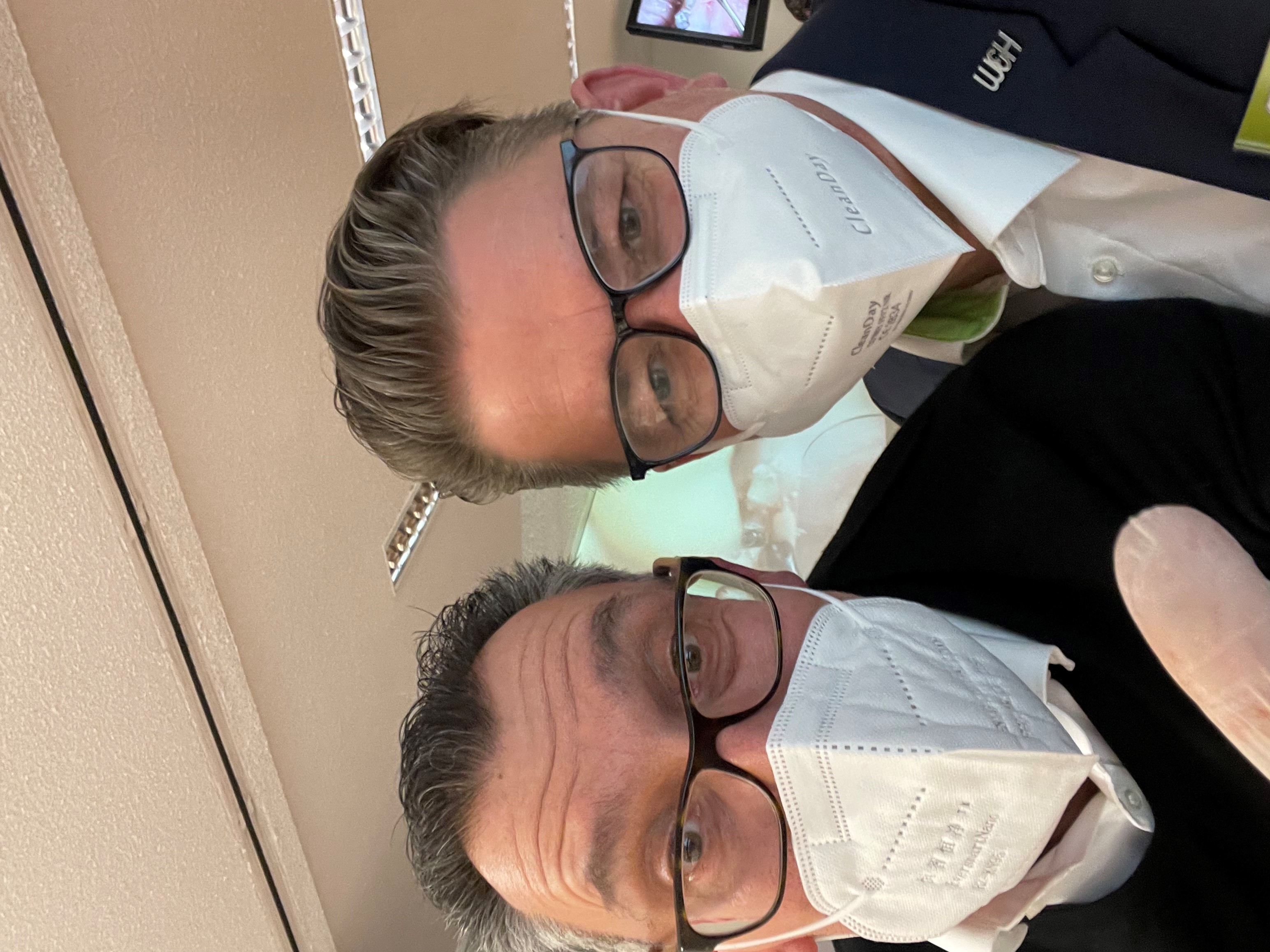 Freitag: 16:00 Uhr Kurs mit Prof. Schlegel in Kitzbühel, ein Traum – aber nicht für KURZ – da mal kurz im Seminarraum, also nix mit Ski und so. 18:43 Uhr fertig und los geht’s nach Nürnberg. 21:47 Uhr im Hotel angekommen, 21:55 Uhr ab an die Bar, um ein Feierabendbier zu nehmen. TATA: 22:00 Uhr Corona-Sperrstunde. Bin ich ein Glückspilz! Versteht das noch jemand? Adieu und ab ins Zimmer. Old Friends dann ab 9 Uhr im Frankenland, während des nächsten Kurses dann wieder mal ein Treffen mit einem geschätzten Kollegen von Camlog: Mr. Markus Knabel.