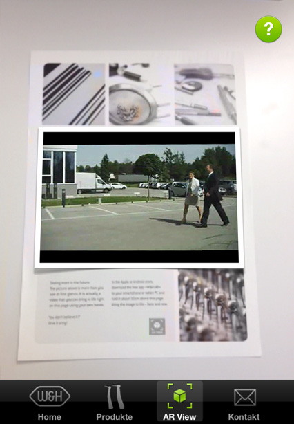 In Zukunft werden ausgewählte Bilder (auch Marker genannt)in Prospekten oder Anzeigen mit einem W&H AR Symbol gekennzeichnet. Wird das mobile Gerät, auf dem die W&H AR App installiert ist, auf das Bild gerichtet, dann startet die AR View unmittelbar: ein Video oder eine andere virtuelle Animation wird sich aus Ihrem Gerät erheben.