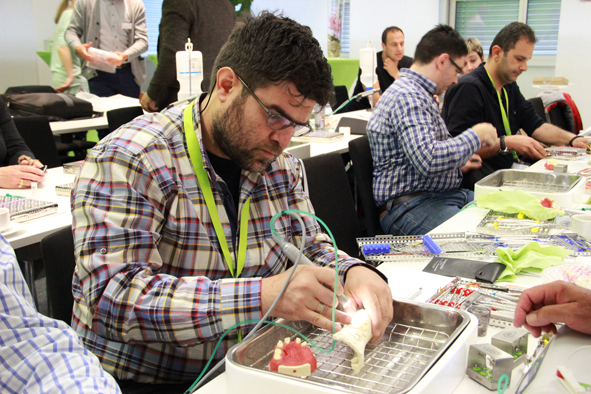 Neben implantologischen Eingriffen im ästhetischen Bereich stand vor allem die Indikation des Sinuslift unter Einsatz modernster Piezotechnologie im Fokus der Veranstaltung. Dabei hatten die Anwender die Möglichkeit, sich von den innovativen Funktionalitäten und Vorzügen des W&H Chirurgie-Gerätes Piezomed zu überzeugen. Zusätzlich thematisierten die beiden Zahntechniker Andreas Chatzibatzakis und Nikos Simeonidis die Kommunikation zwischen Zahnarzt und Zahntechniker und gaben wertvolle Hinweise für eine reibungslose Zusammenarbeit.