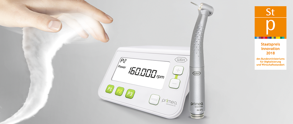 Mit der Advanced Air Technologie gehört Drehzahlverlust der Vergangenheit an. Ein Sensor im Kopf der Turbine misst laufend die tatsächliche Rotationsgeschwindigkeit des Bohrers am Zahn. Sobald die Drehzahl zu sinken droht, regelt das Steuermodul die Luftzufuhr unmittelbar nach und hält so die Abtragsleistung konstant.