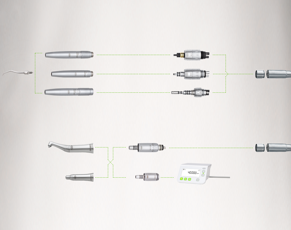 Type: ZA-55 LM ZA-55 LS ZA-55 ZA-55 M ZE-55 BC ZE-55 RM Light: Yes No Power regulation: Yes No Oscillating frequency: 6 kHz Oscillation amplitude: < 200 μm* Operating pressure: 3.4 ± 0.3 bar 2.5 ± 0.3 bar Coolant flow volume: 20–50 ml/min Coupling: RM-34 LED, Multiflex®** Sirona®** RQ-3, RQ-4,