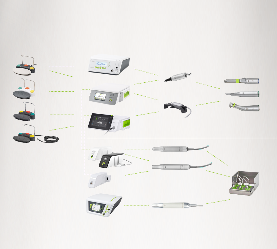 This not only facilitates operation but also increases safety in oral surgery. In addition, the risk of overloading the instruments is reduced and the service life of your surgical instruments considerably extended!