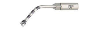 - Left-curved, diamond-coated tip for periodontal debridement. Especially suitable for open root planing.