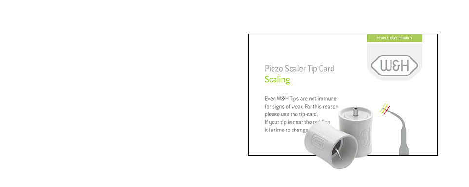 So as to prevent signs of age, all universal tips as well as the Perio tip are provided with a tip card as well, which can be used to measure the level of wear of the individual tips. The wear must not amount to more than 2 mm.