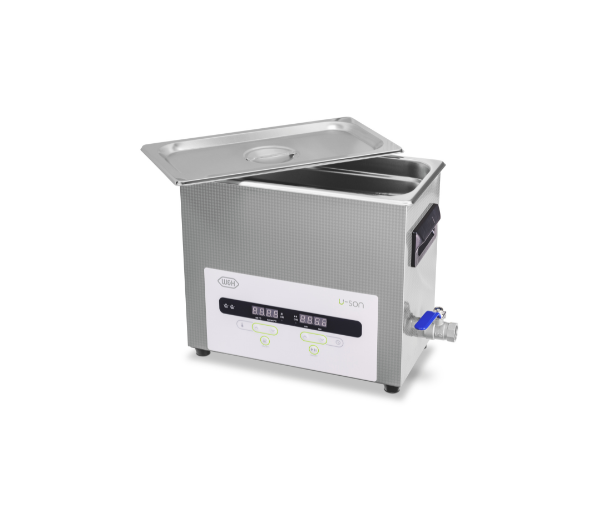 Ultrasonic device for highly effective cleaning. Programmable temperature and times. Stainless steel chamber. Automatic 'de-gas' function.