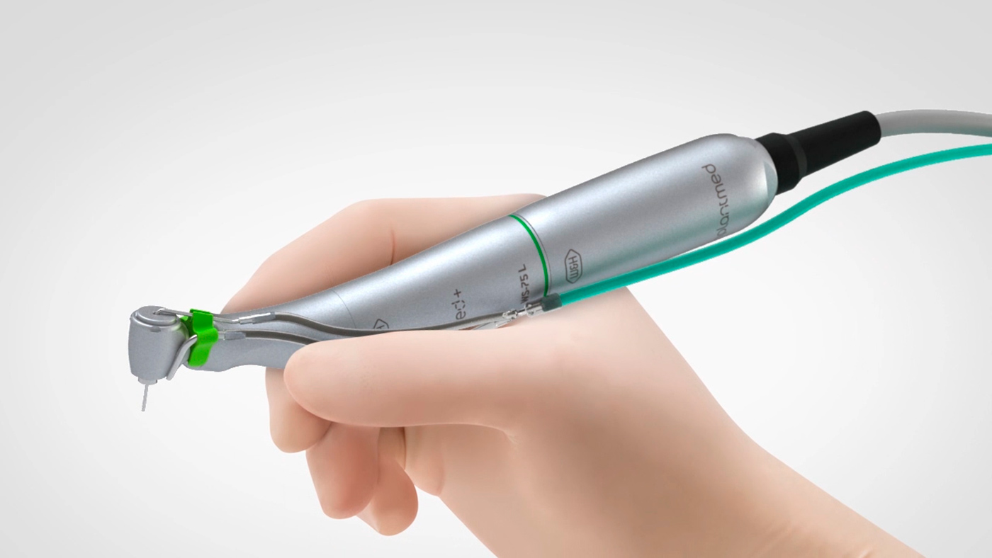Con el potente micromotor eléctrico pueden realizarse incluso intervenciones de implantología complicadas sin gran esfuerzo. Además, el contra-ángulo se manipula cómodamente y está perfectamente equilibrado cuando se utiliza junto con el micromotor eléctrico ultracorto.