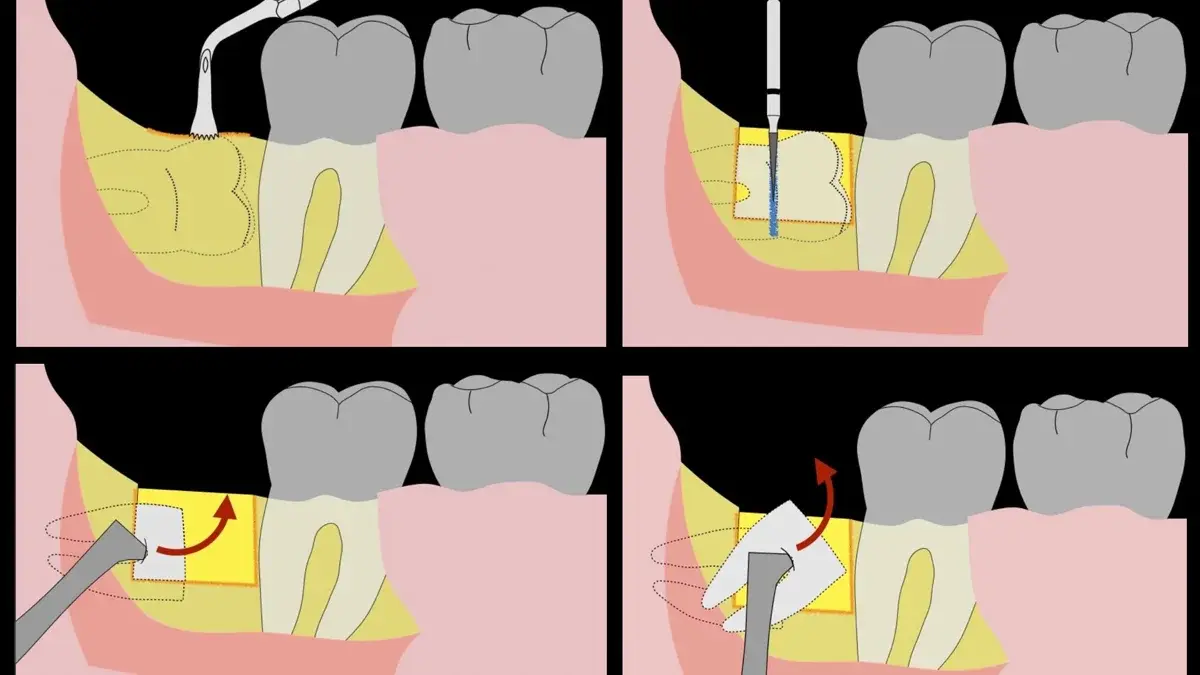 El procedimiento puede variar en su complejidad dependiendo de su ubicación, profundidad, angulación, y la densidad ósea circundante.2 Uno de los pasos más críticos y cruciales en la extracción es la osteotomía previa y concomitante al acceso quirúrgico del diente, para lo cual se utilizan diversos instrumentos como cinceles y martillos, instrumental rotatorio o de corte por ultrasonido.3