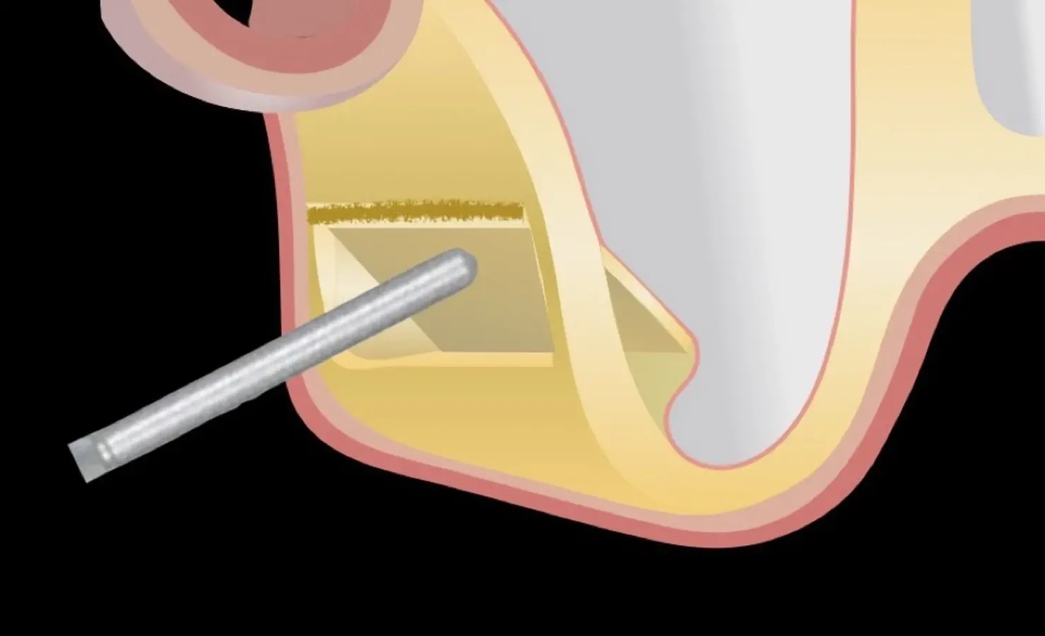 Se inicia la elevación de la membrana de Schneider con el inserto redondeado no cortante en forma de disco, empleando movimientos suaves. El levantamiento puede complementarse con elevadores convencionales, siguiendo la dirección mesiodistal. La fase de desprendimiento inicia con el piso y sigue hacia la pared mesial para terminar, y de ser necesario, hacia la pared posterior. Existen diversos insertos con angulaciones y longitudes para mayor accesibilidad16 (Figura 1).