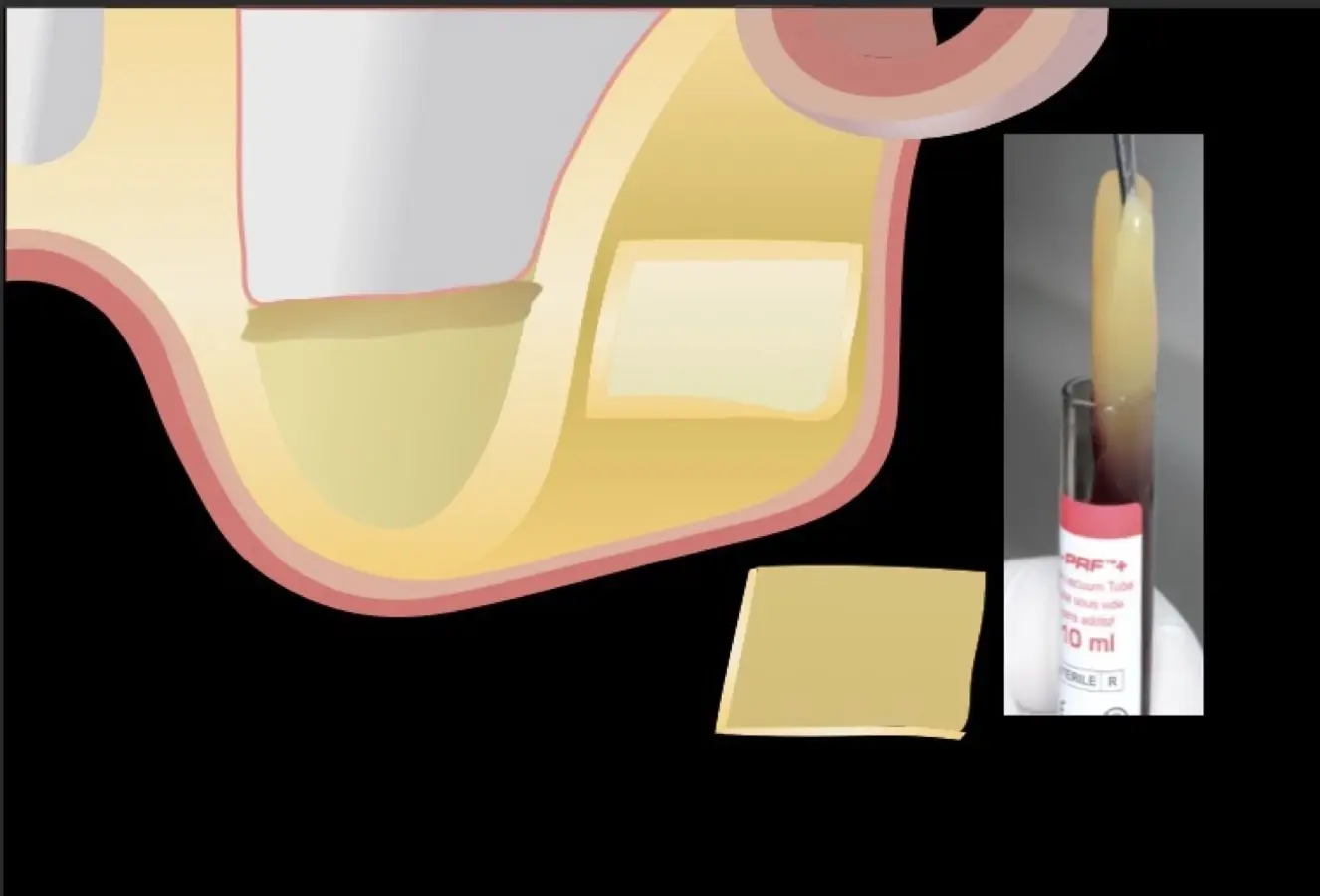 Una vez elevado el piso sinusal según la planificación se realiza la evaluación clínica de la integridad de la membrana y de posibles desgarros a través de la maniobra de Valsalva.24 Consiste en pedir al paciente que respire profundamente y retenga el aire, cerrar la boca, apretar la nariz con los dedos y forzar la salida de aire. Al final de la prueba, es necesario mantener la presión entre 10 a 15 segundos. Se identificará la movilidad de la membrana y la ausencia de burbujas de aire para corroborar que no hay perforaciones. Dependiendo de la decisión clínica se puede optar por adicionar en la superficie de la membrana de Schneider membranas de colágeno o de plasma rico en fibrina (PRF) para dar mayor soporte durante la inserción del biomaterial de relleno óseo (Figura 10).