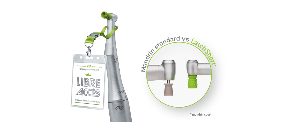 Le Proxeo Twist à système de polissage LatchShort* est une solution très intelligente pour le polissage professionnel des dents : avec ses cupules parfaitement adaptées, la petite tête offre une hauteur de travail considérablement réduite.