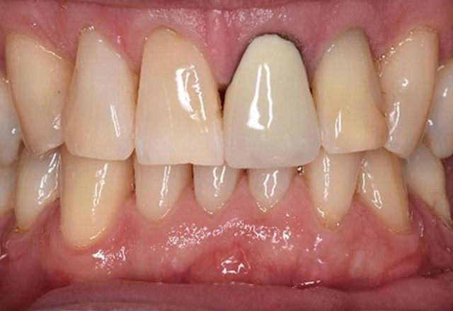 In the medical history, the 55 year-old patient states that he has no systemic disease and is not taking any medication. The patient’s lifestyle is similarly unremarkable. The patient has a few tooth restorations and two implants (2nd and 4th quadrants). On the basis of current findings, gingivitis is identified in an otherwise stable periodontal condition on the reduced periodontium (stage III, grade A).