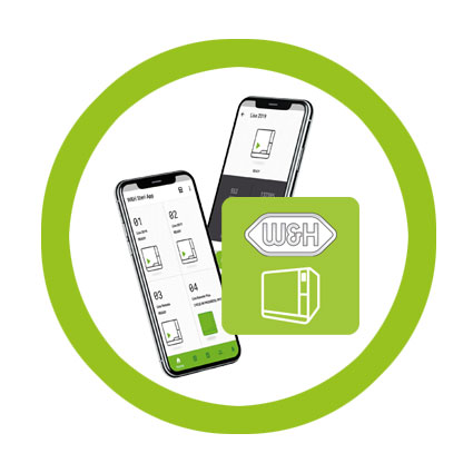 - W&H Steriアプリ:情報はすべてW&H Steriアプリに保存され、いつでも見ることができます。