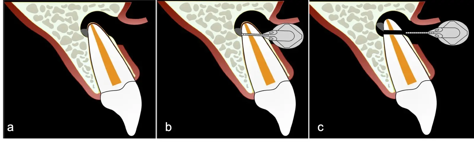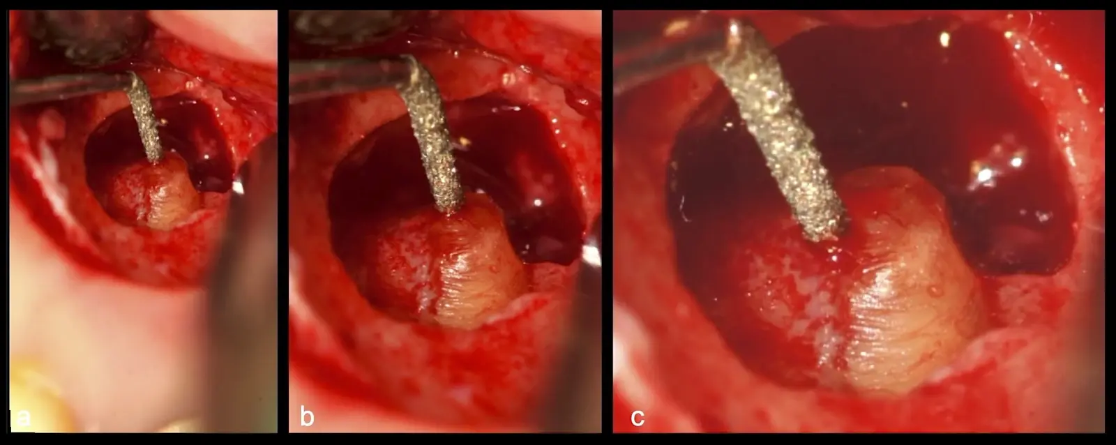 El procedimiento se inicia colocando anestesia y elevando un colgajo mucoperióstico a espesor completo y exponiendo la zona. En seguida se realiza la enucleación de la lesión, eliminando o creando una ventana en la lámina cortical que contiene el área del ápice.