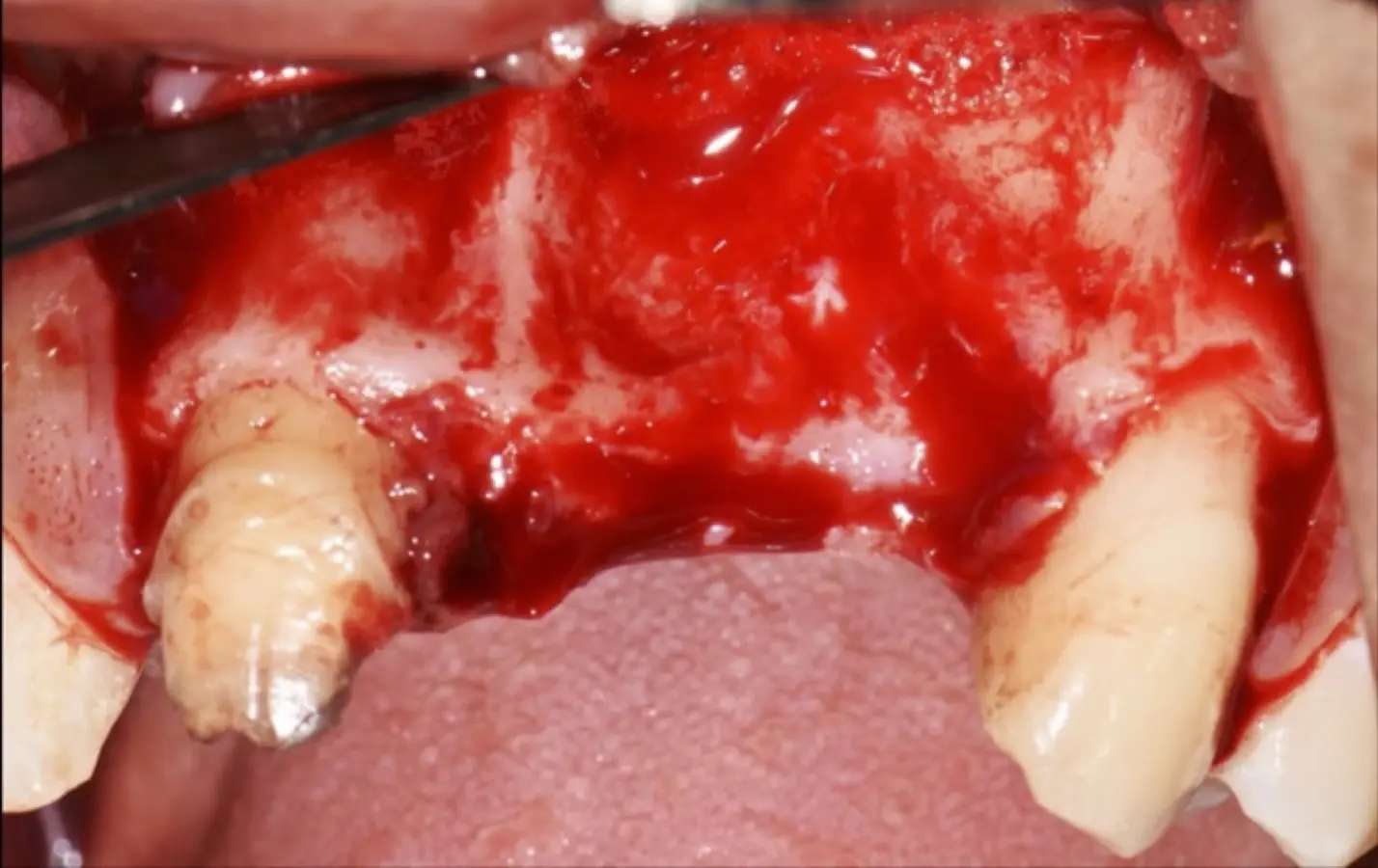 Figura 18. Vista clínica en la que se evidencia la deficiencia horizontal severa del reborde alveolar.
