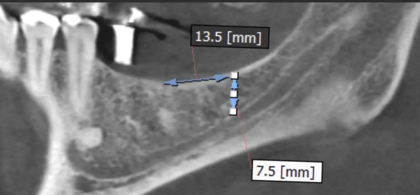 Paciente de sexo femenino de 53 años llega a la consulta solicitando una prótesis implantosoportada. En la evaluación clínica se observa un edentulismo total superior con una severa reabsorción ósea generalizada, a excepción de la pieza 2.3, que se encontraba en estado de remanente radicular. En la evaluación tomográfica se corrobora el hallazgo clínico y se indica una reconstrucción de reborde con injertos en bloque previo a la planificación de implantes dentales.