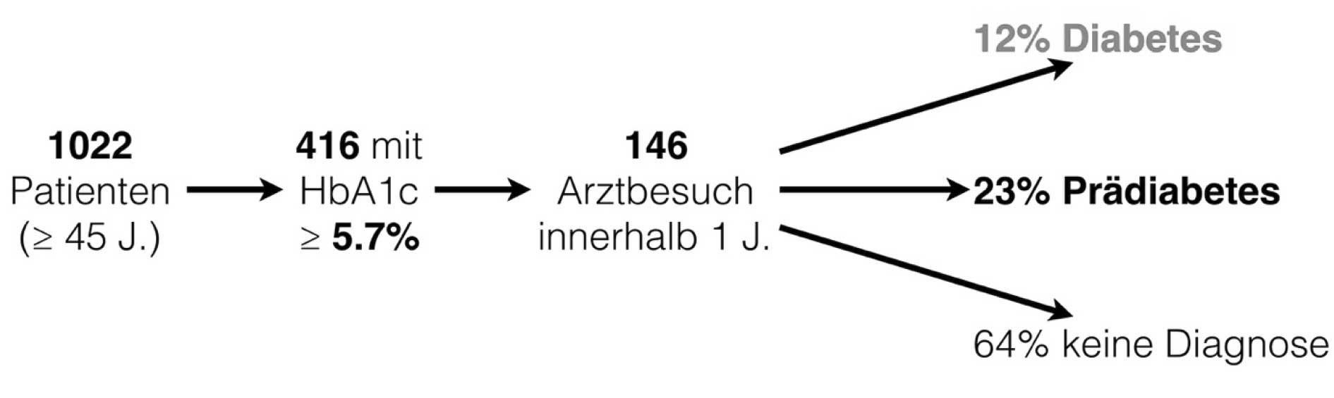 Several studies have already addressed this topic. The example discussed below is from the USA (Genco et al. 2014). In this study, the HbA1c of more than 1000 patients was measured, and almost 50% of patients had an HbA1c of ≥ 5.7%. These 416 patients were advised to visit their general practitioner; however, only 146 patients in this study followed this recommendation. Nonetheless, the numbers of newly diagnosed cases of pre-diabetes and diabetes among these 146 patients were shocking: 23% of cases were classified as pre-diabetes, and 12% were actually classified as manifest diabetes.