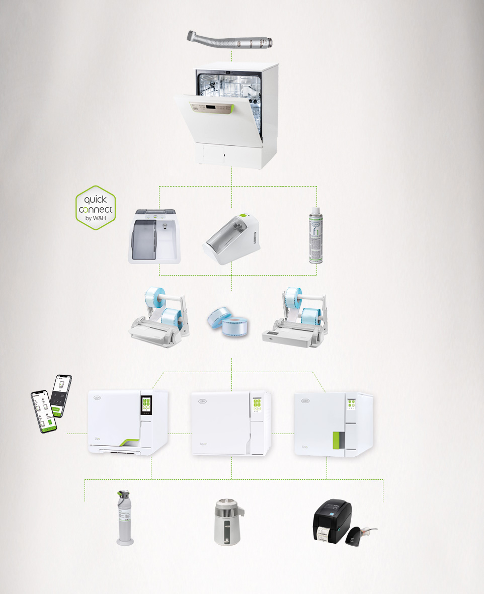 Tack vare den integrerade Quick Connect från W&H passar Assistina Twin smidigt in i dina arbetsflöden och gör dem ännu mer effektiva. Varför? För att du kan utrusta enheten med precis de adaptrar du behöver för dina instrument.