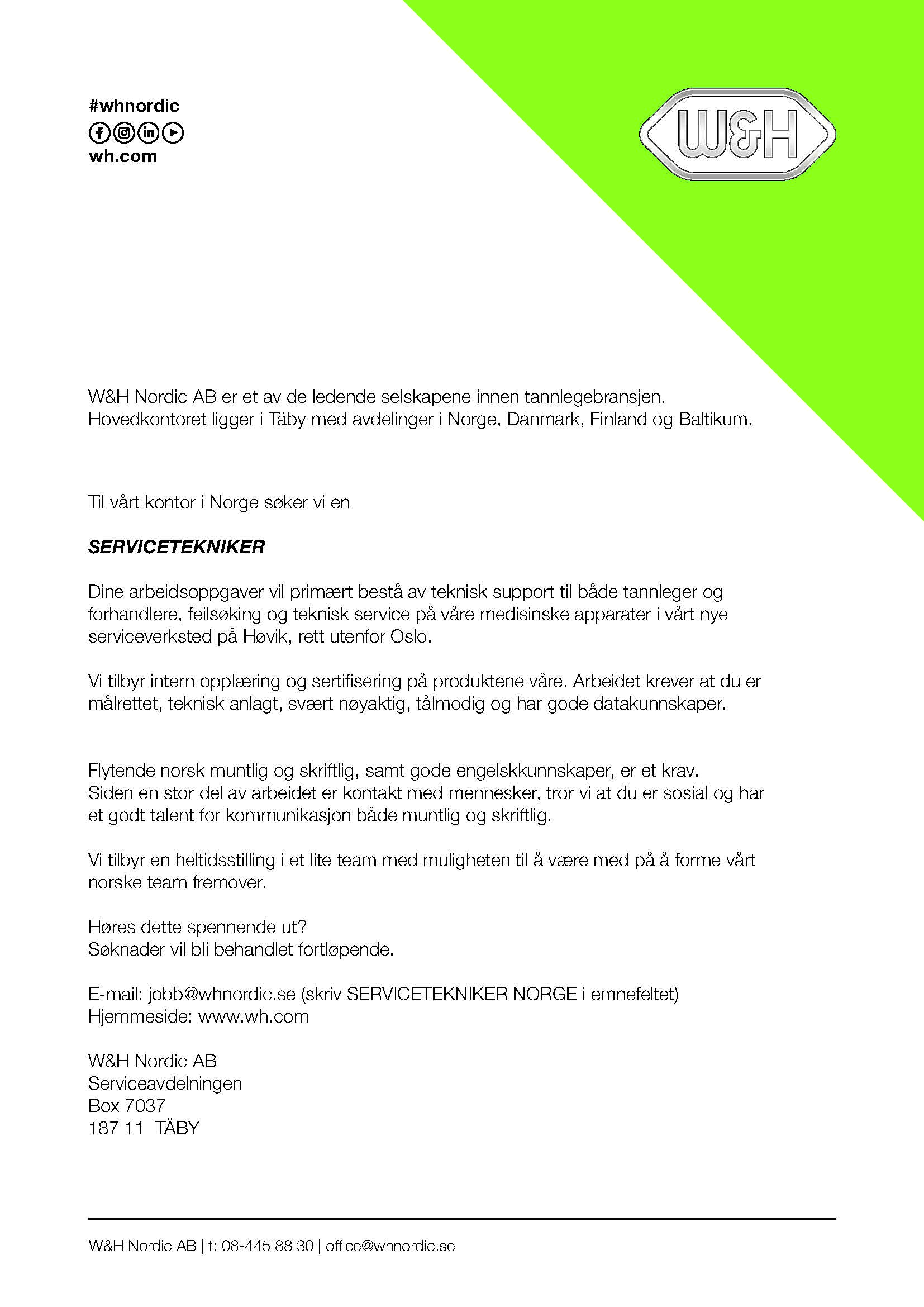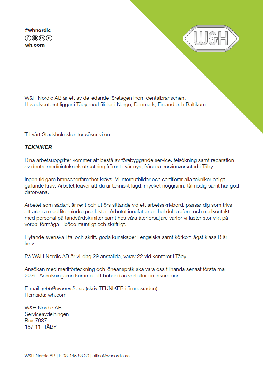 Lediga jobb på W&H Nordic AB